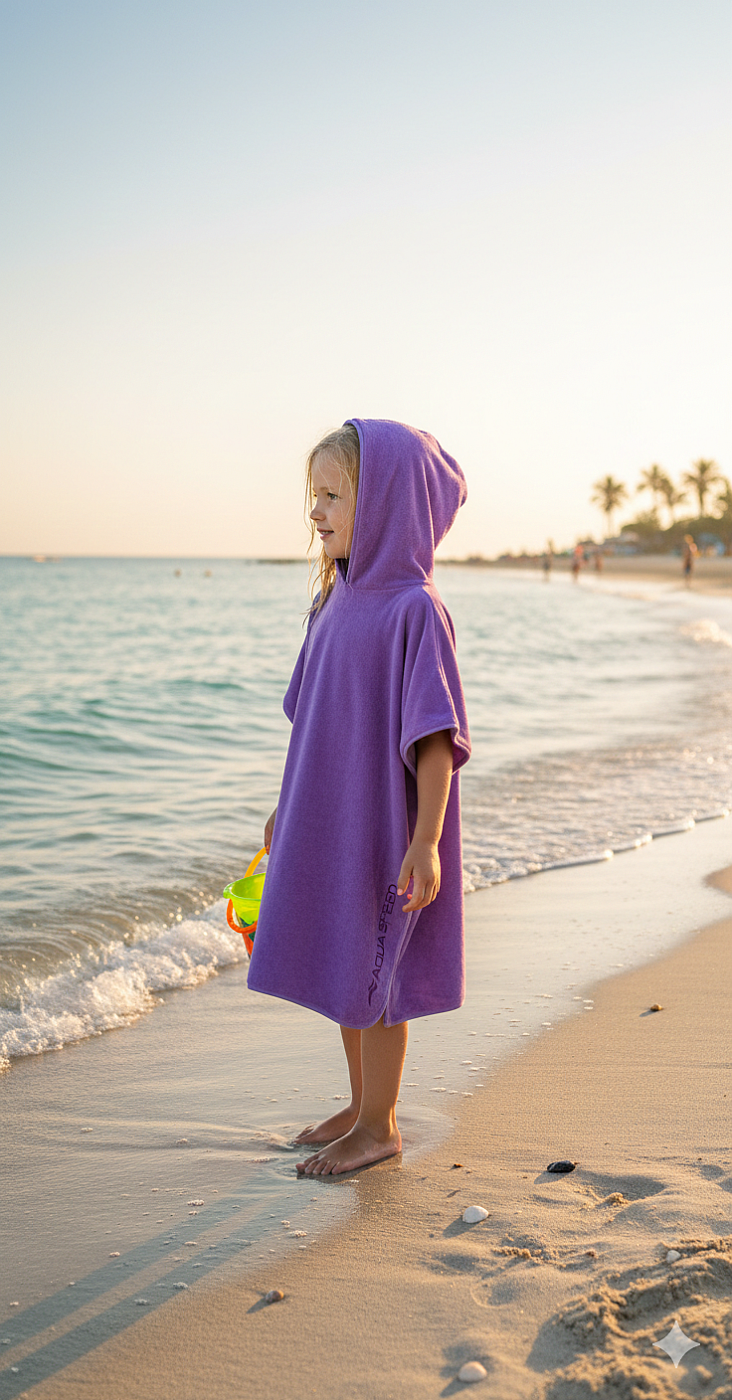 Der Mikrofaserponcho für Kinder ist ein praktischer Helfer nach dem Schwimmen – ob zu Hause, im Meer oder im Pool. Er wurde speziell für die Bedürfnisse von Kindern entwickelt: bequem, saugfähig und angenehm zu tragen. Dank seiner Vielseitigkeit wird er schnell zum Lieblingsstück von Kindern und Eltern. Material: 400 g/m² Gewicht: ca. 350 g