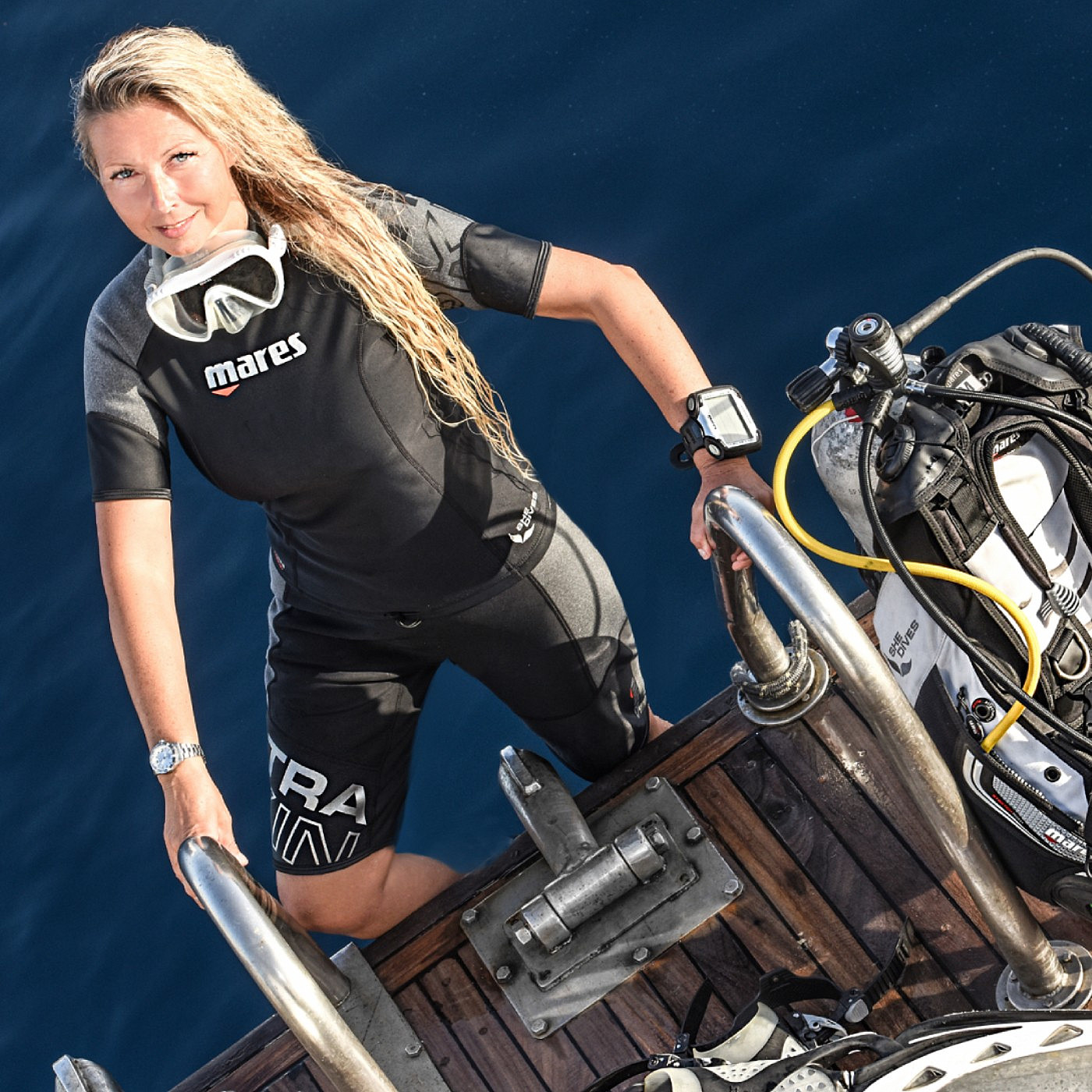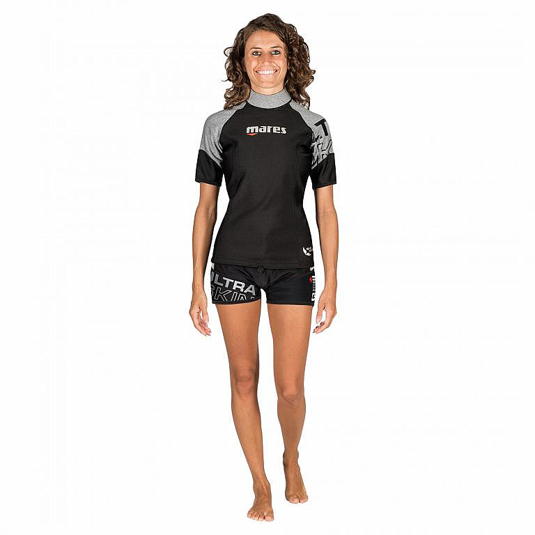 Neues Damen- T-Shirt mit kurzen Ärmeln vom Hersteller Mares . Dieses Thermo-T-Shirt aus der neuen ULTRA SKIN-Linie ist eine großartige Alternative zu gewöhnlichem Neopren. Es ist möglich, es mit Shorts aus der gleichen Serie zu kombinieren.